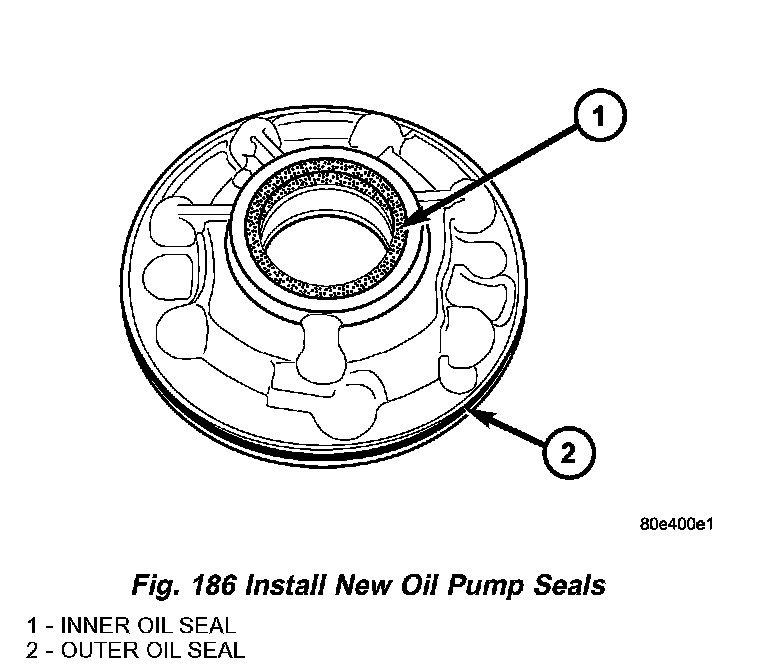 1. Install new inner oil pump seal (1) (Fig. 186) with Seal Installer 8902 A.