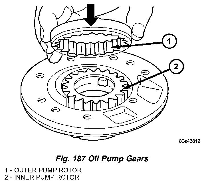 3. Replace the outer oil pump O-ring (2) (Fig. 185).