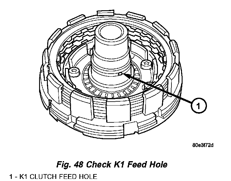 5. Check that the K1 clutch feed hole (1) (Fig. 48) in the inner hub of clutch B1 is free before installing clutch B1.