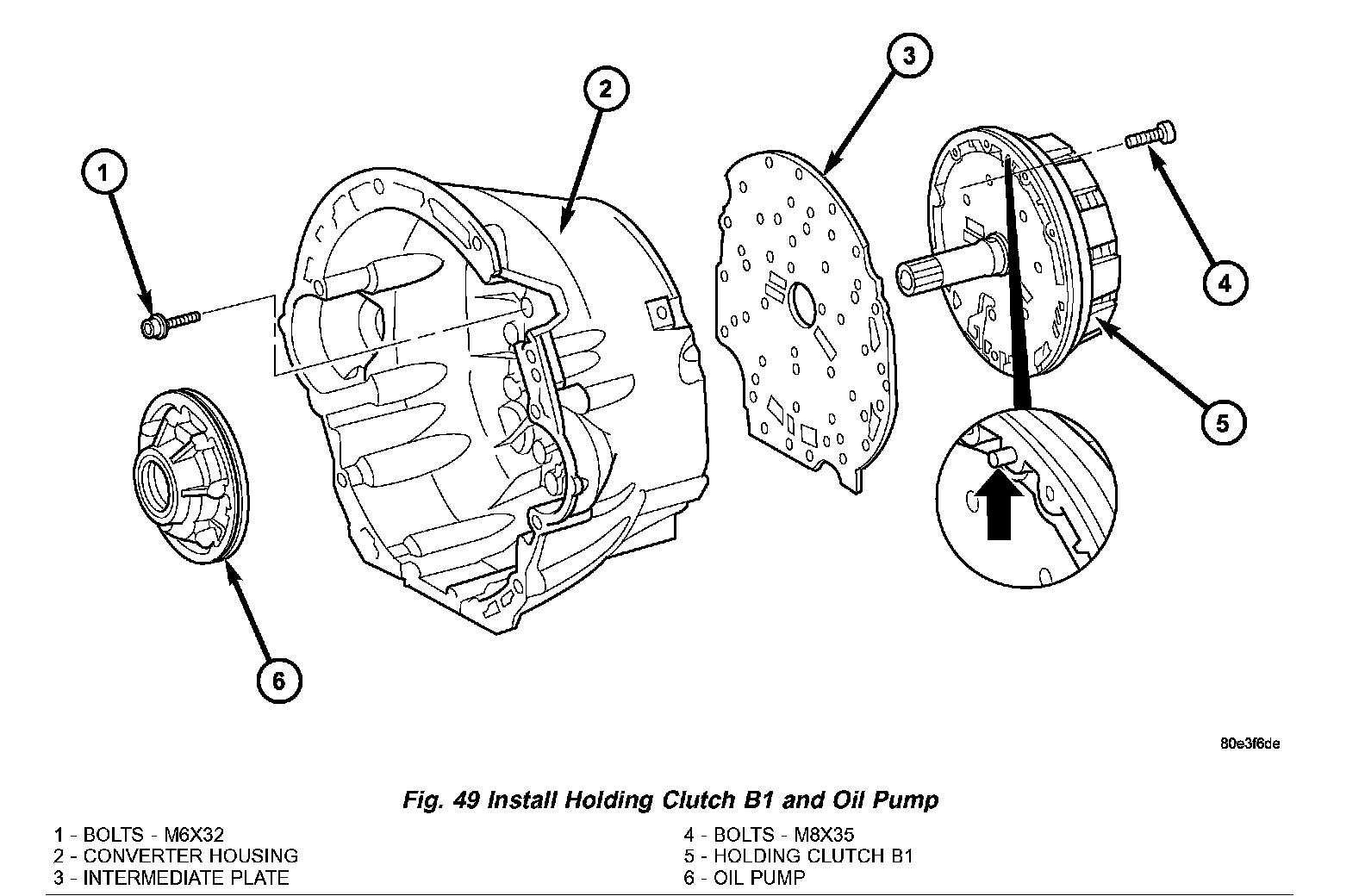 8. Install the bolts to hold clutch B1 (5) (Fig. 49) to the converter housing.
