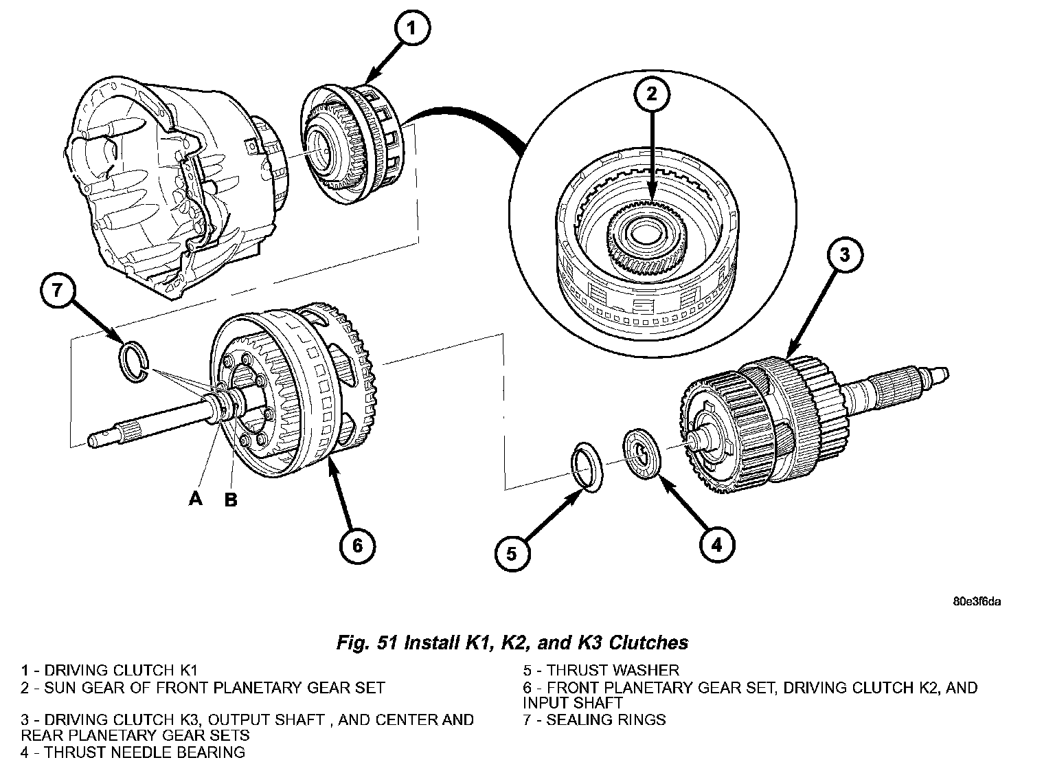 14. Install the K1 (1) clutch onto the B1 clutch (Fig. 51).