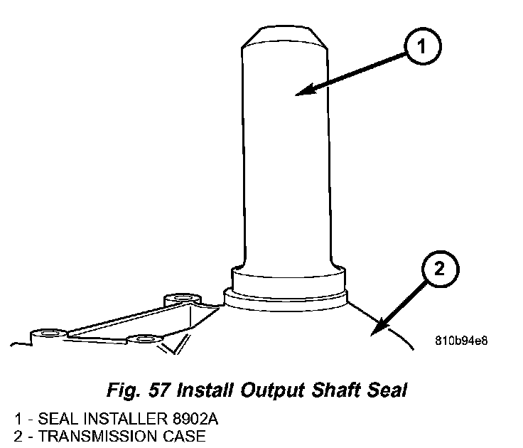 34. Install a new transmission rear seal into the transmission case with Seal Installer 8902A (1) (Fig. 57).