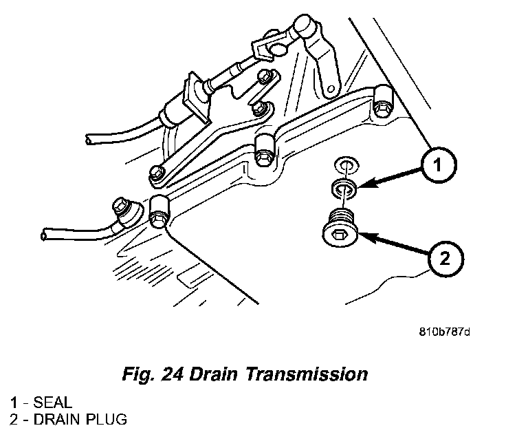 4. Remove oil drain plug (2) (Fig. 24) and drain automatic transmission oil into a clean container.