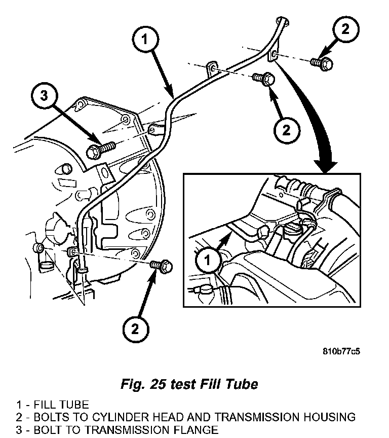c. Pull lower connection of oil filler pipe (1) (Fig. 25) out of the fill hole in the side of the transmission housing.