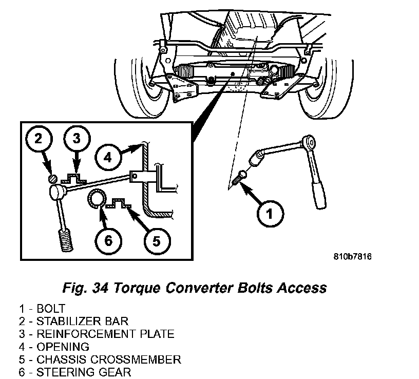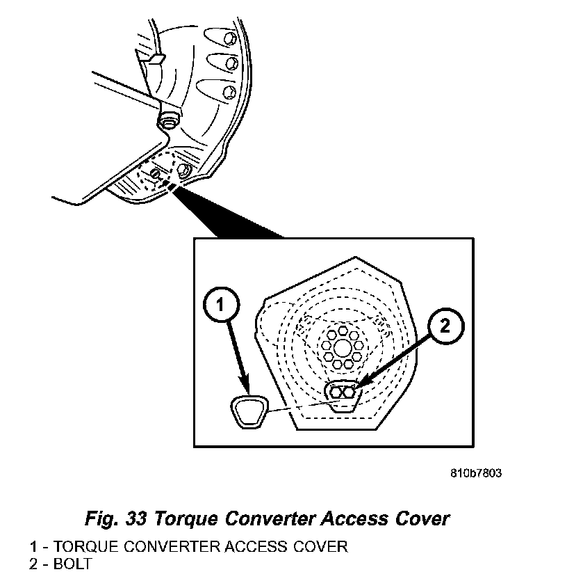 c. Remove the plastic torque converter access cover (1) (Fig. 33) at back of engine flange.