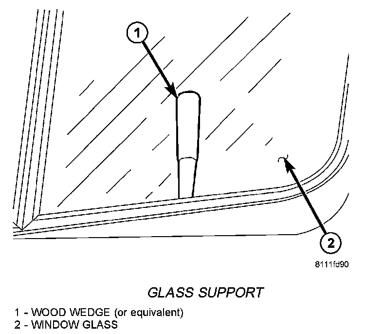 5. Using wood wedge, tape or equivalent, secure glass in the up position.