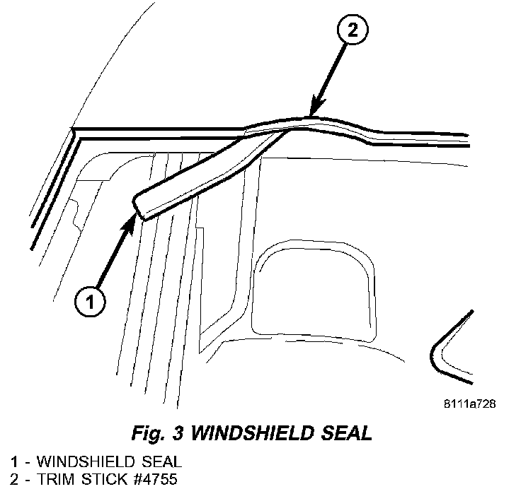 4. Using a trim stick C-4755 or equivalent,remove windshield seal. (Fig. 3)