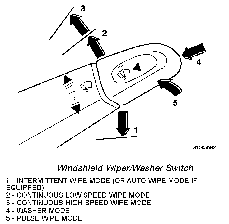 - Pulse Wipe Mode - The internal circuitry of the multi-function switch and the wiper system logic circuits work in concert to provide a pulse wipe mode that will allow the wiper motor to be operated for a single, complete wipe cycle.