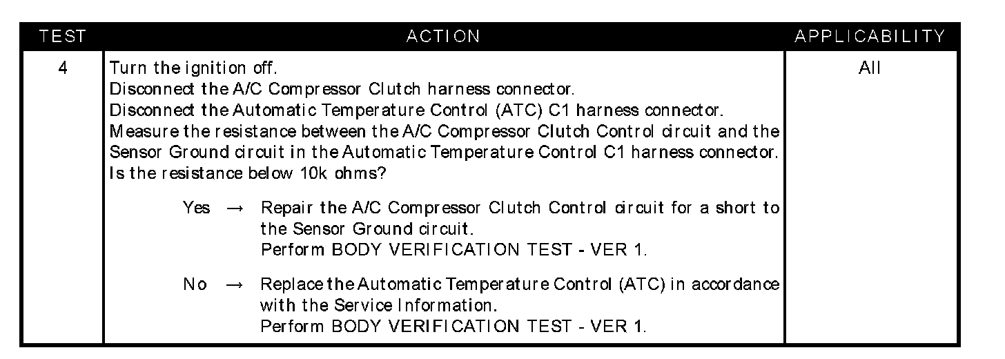 - A/C compressor clutch control circuit shorted to sensor ground circuit