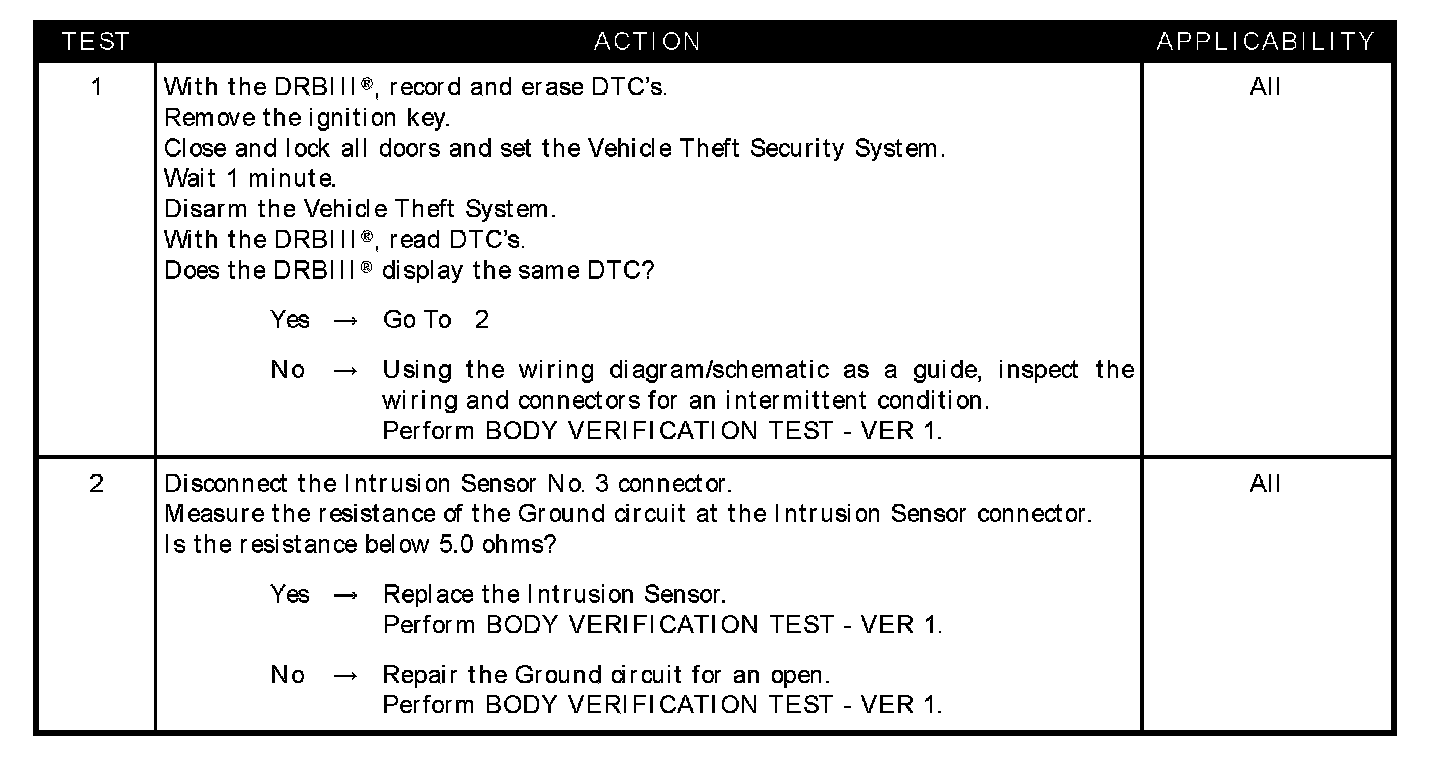 INTRUSION SENSOR 3 GROUND CIRCUIT OPEN