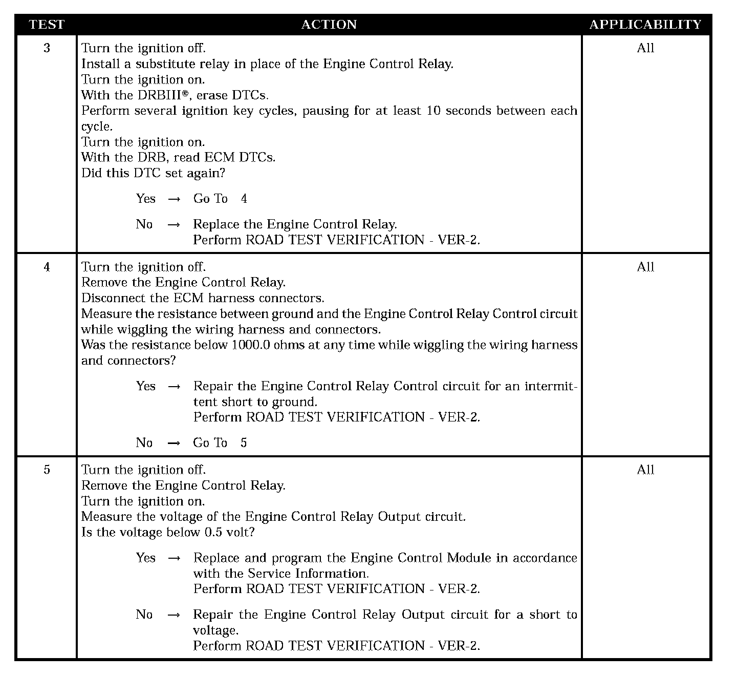 The internal ECM timer determines that the Engine Control Relay remains on for more than 2.0 seconds after the ECM has turned off the Engine Control Relay.