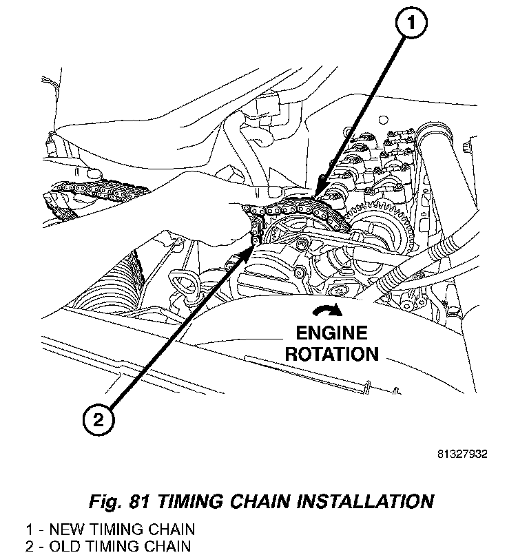 1. Connect new timing chain, oil hole side up and old timing chain with the assembly link, the assembly plate and the assembly locking element, and secure (Fig. 80).