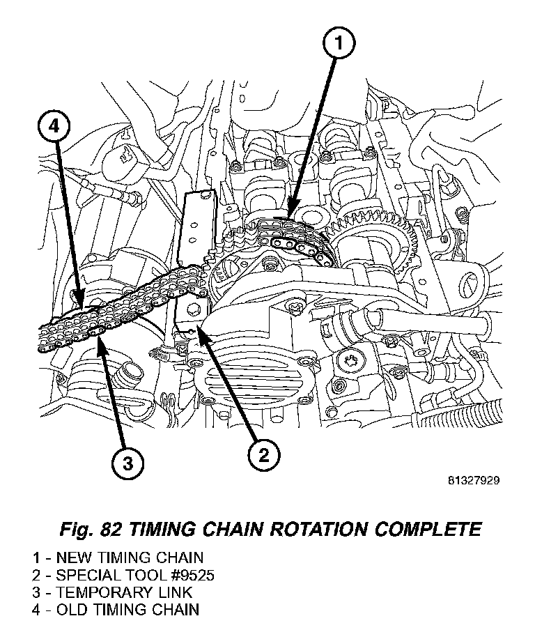3. Rotate the engine until the ends of the new timing chain meet and can be connected (Fig. 82).
