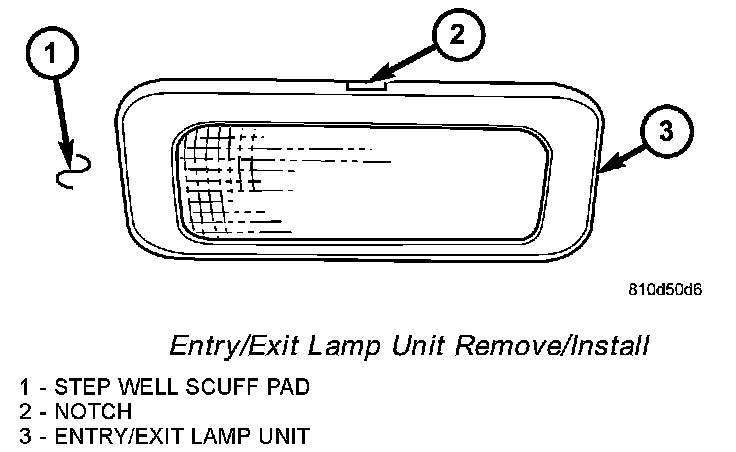 2. Insert the tip of a small flat-bladed screwdriver into the notch on one edge of the entry/exit lamp housing to depress the retainer clip and pull that edge of the lamp away from its mounting location.
