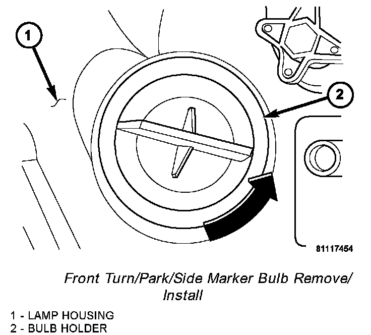 2. Locate the turn/park/side marker bulb holder on the rear outboard side of the front lamp unit housing.