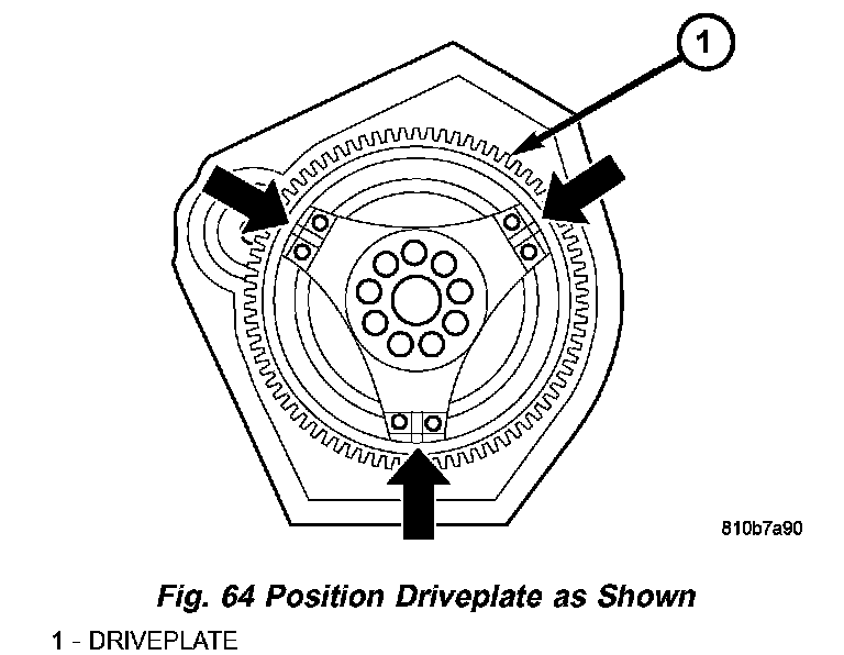 a. Install the first pair bolts (2) (Fig. 66) at circumference of driving plate snug only.