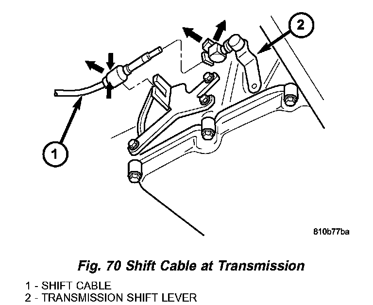 15. Install the shift cable (Fig. 70) to the transmission.
