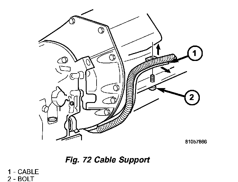 b. Attach the bracket for the cable retainer (4) (Fig. 72) to the threaded shank of a engine oil pan bolt (5).