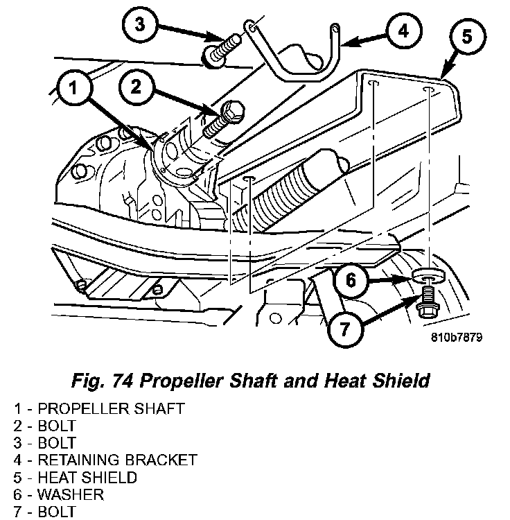 19. Attach propeller shaft (1) (Fig. 74) to the transmission.