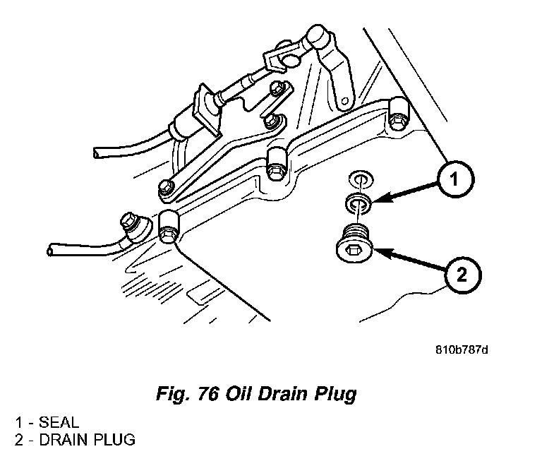 21. Install the oil drain plug (2) (Fig. 76) with a new seal into the transmission oil pan. Tighten the drain plug to 20 Nm (14.5 ft. lbs.).