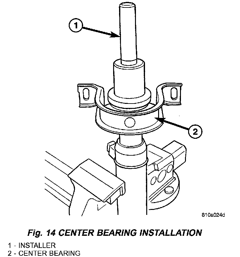 1. Press center bearing on propeller shaft with protective caps and washer with Installer 9275 (Fig. 14).