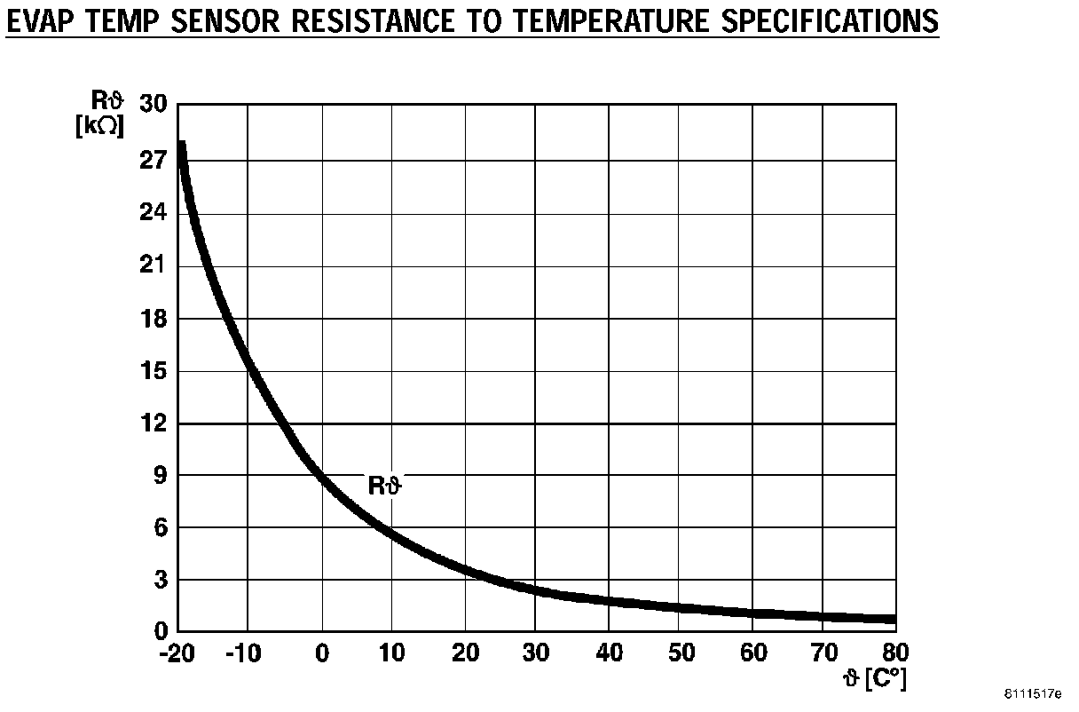 EVAP Temp Sensor Resistance To Temperature Specifications: