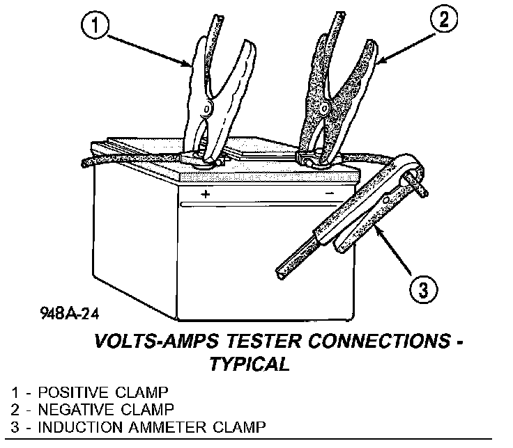 1. Connect volt-ampere tester to battery terminals. See instructions provided by manufacturer of volt-ampere tester being used.