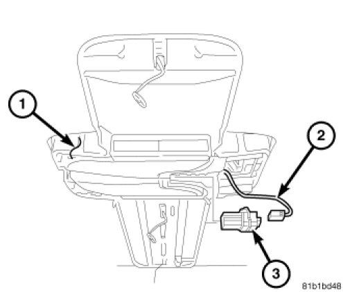 1. Position the rear blower motor power module (3) to the rear evaporator housing (1) and connect the wire harness connector (2) to the module.
