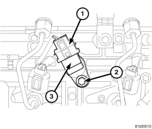 1. Install camshaft position sensor (3) and tighten camshaft position sensor bolt (2) to 8 Nm (71 in.lbs.).