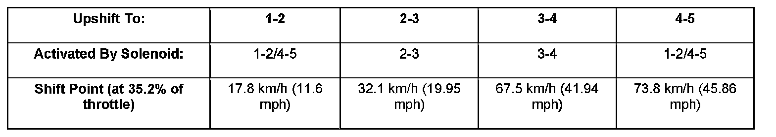 Based on how aggressive the driver is, the TCM moves up the shift so that the present gear is held a little longer before the next upshift. If the driving style is still aggressive, the shift point is modified up to ten steps. If the driving returns to normal, then the shift point modification also returns to the base position.