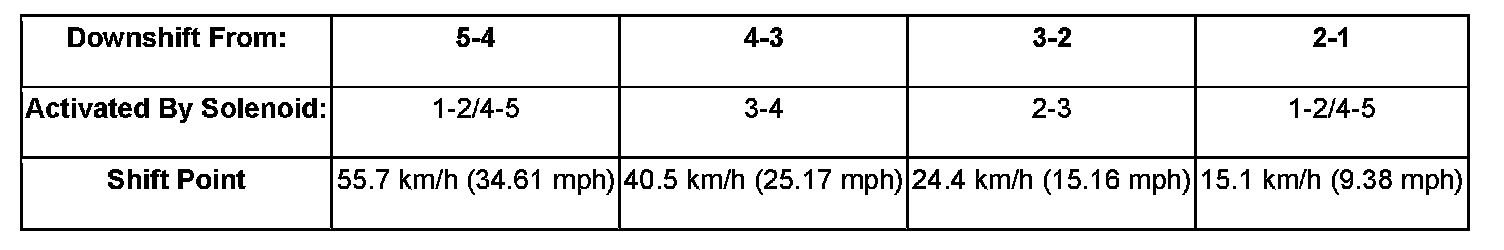 When the TCM detects that system voltage has dropped below 8.5 volts, it disables voltage-dependant diagnostics and places the transmission in the temporary Limp-In Mode. When the TCM senses that the voltage has risen above 9.0 volts, normal transmission operation is resumed.