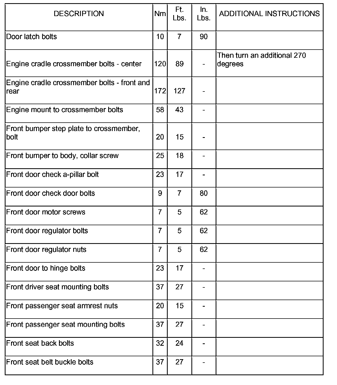 Body Specifications