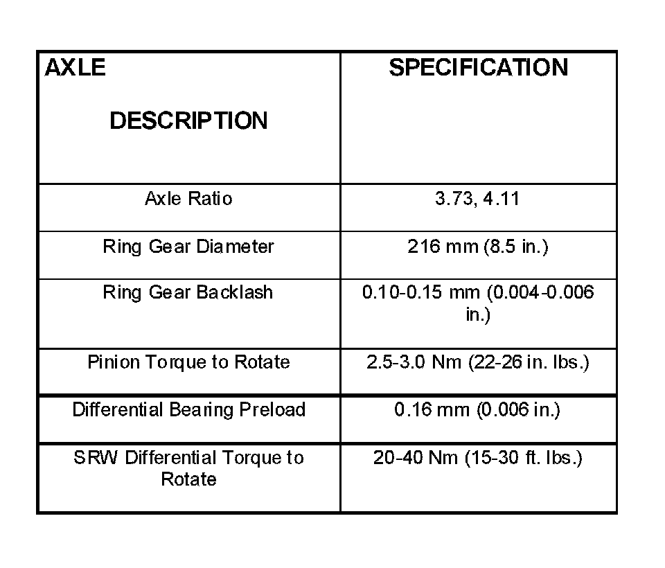 Axle Specifications: