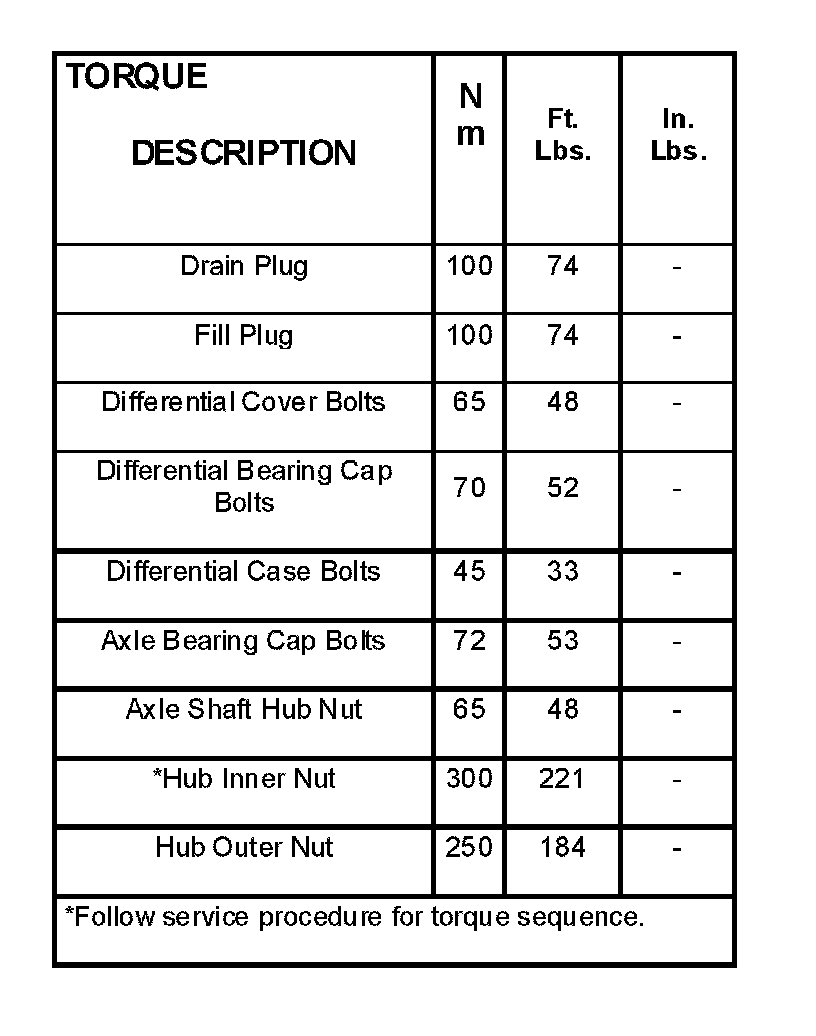 Torque Specifications: