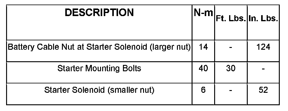 TORQUE - STARTER - 3.0L DIESEL ENGINE