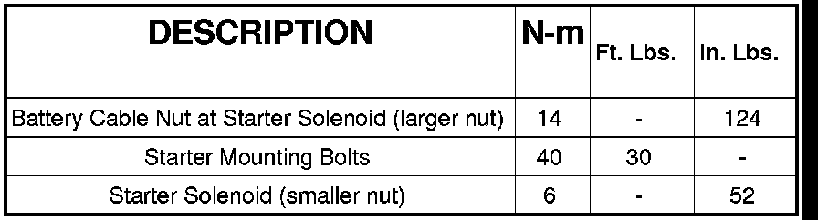 TORQUE - STARTER - 3.0L DIESEL ENGINE