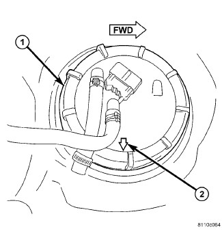 9. The fuel line fittings should be pointed to the right side of the vehicle. Rotate and position alignment arrow towards right side of vehicle (if necessary) before tightening locknut. This step must be performed to prevent the module's float from contacting the side of fuel tank.