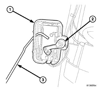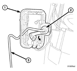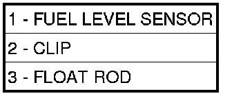 6. Rotate clip (2) to release float rod (3) from fuel level sensor (1).