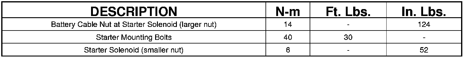 TORQUE - STARTER - 3.0L DIESEL ENGINE