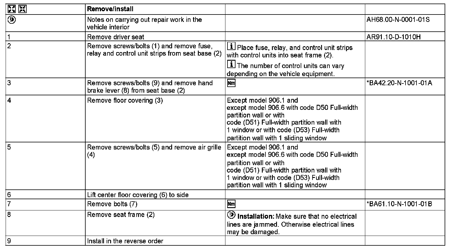 AR91.10-D-3520H Remove/Install Seat Frame
