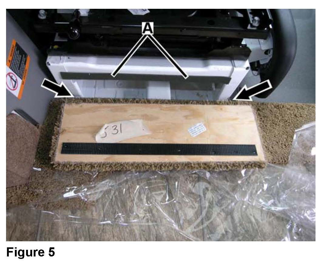 ^ Affix new Velcro tape (A, Figure 5) to new seat base (if equipped with carpet).