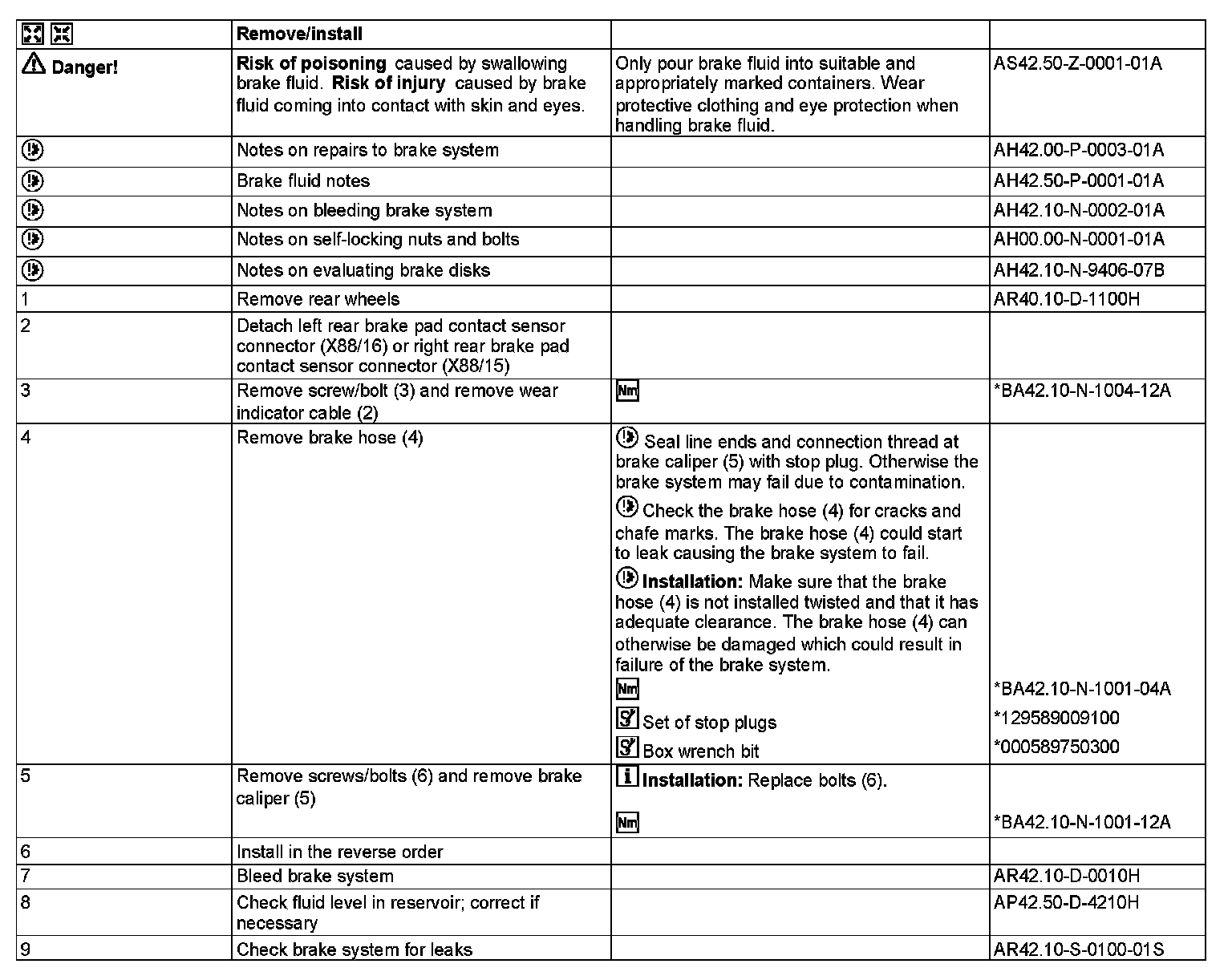 AR42.10-D-0080I Remove/Install Rear Axle Brake Caliper