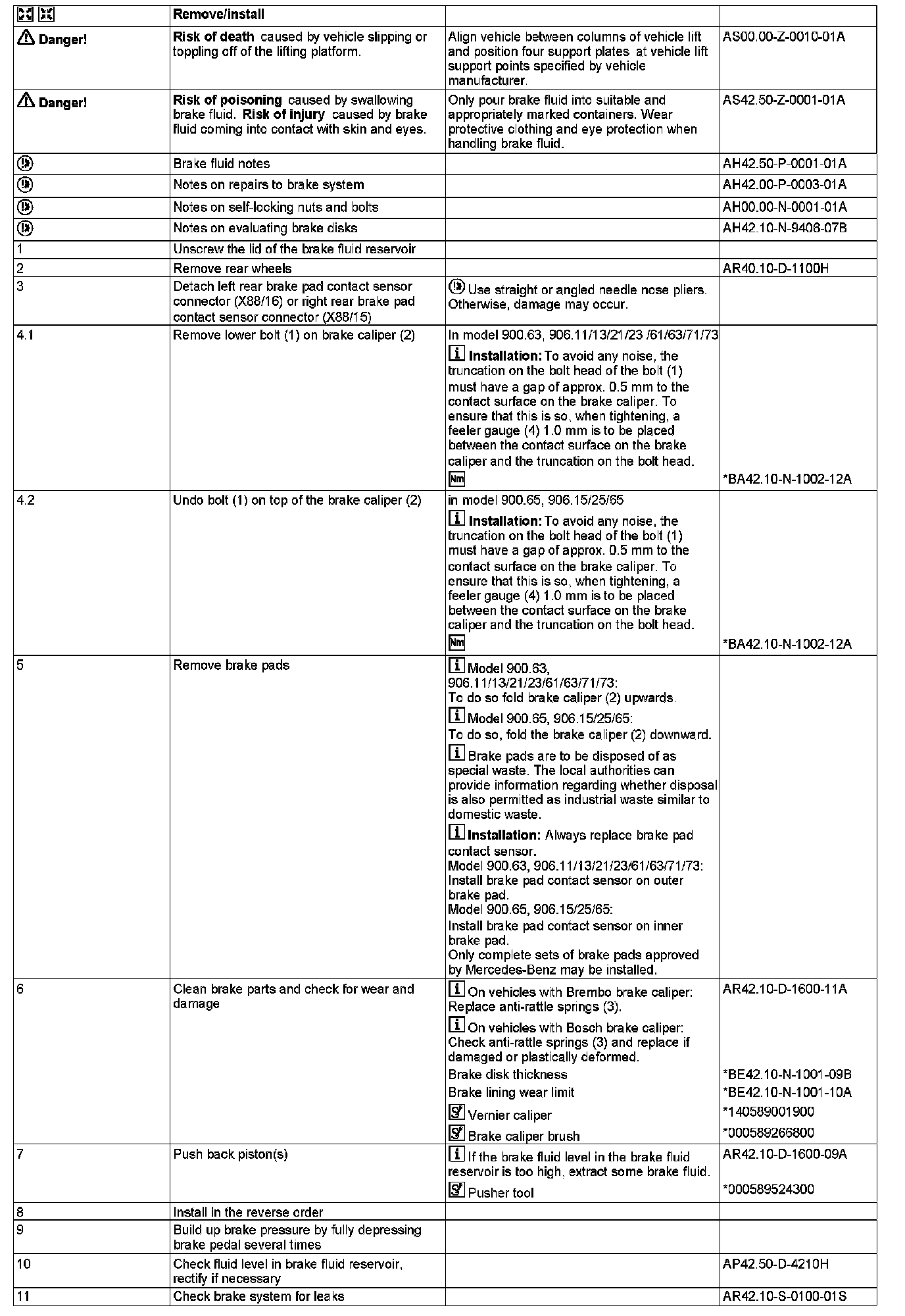 AR42.10-D-1700H Removing, Checking And Installing Rear Axle Brake Pads