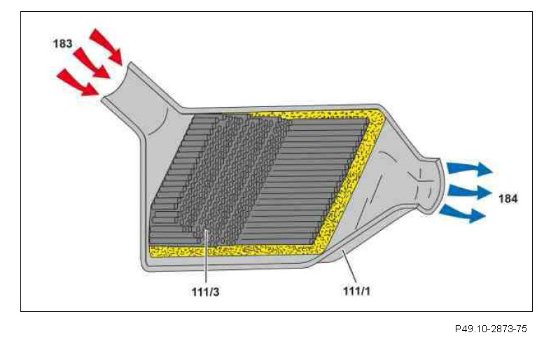 The carrier layer with the active catalytic layer, attached to the ceramic monolith, contains platinum as the active component and accelerates the oxidation of HC, CO and NOX.