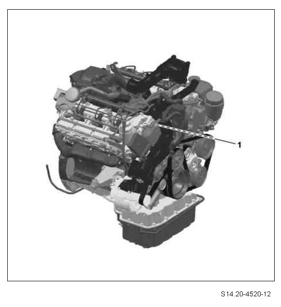 The exhaust gas recirculation cooler is located below between the two cylinder heads.