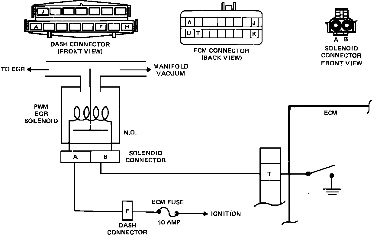 PWM EGR is an ECM control that pulses the vacuum signal to the EGR. This is accomplished through an EGR solenoid that when energized by the ECM shuts off the vacuum to the EGR. This system can pulse the solenoid many times per second (PWM). The EGR solenoid is always energized (EGR off when the transmission is in park or neutral.