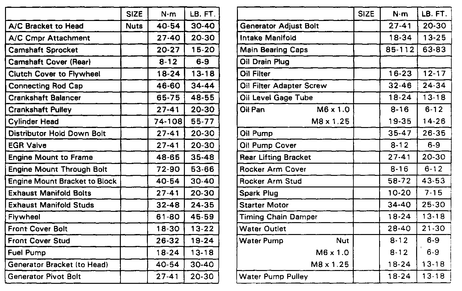 Torque Specifications:
