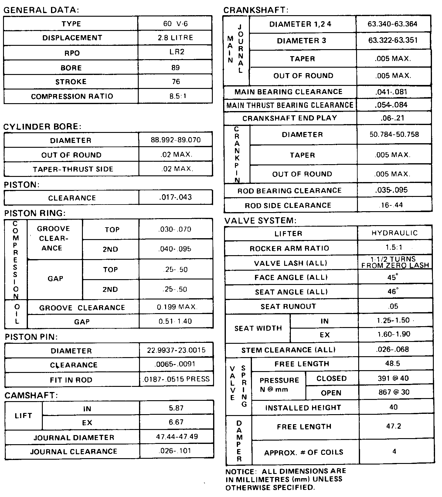 Engine Specifications: