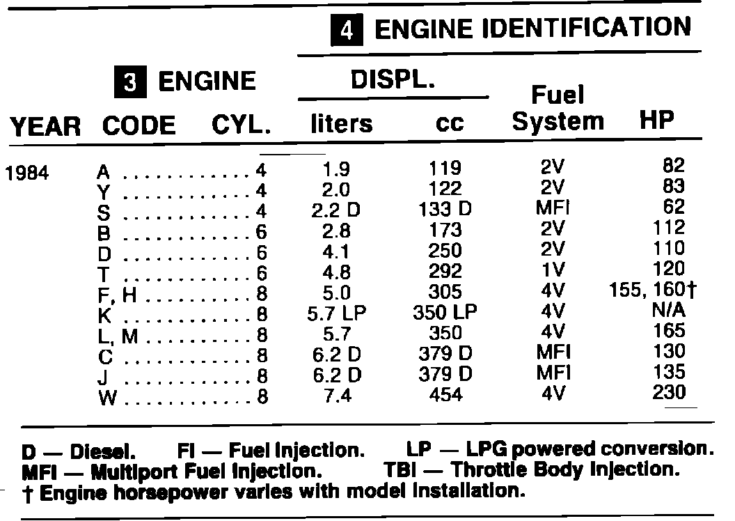 ENGINE IDENTIFICATION 1984: