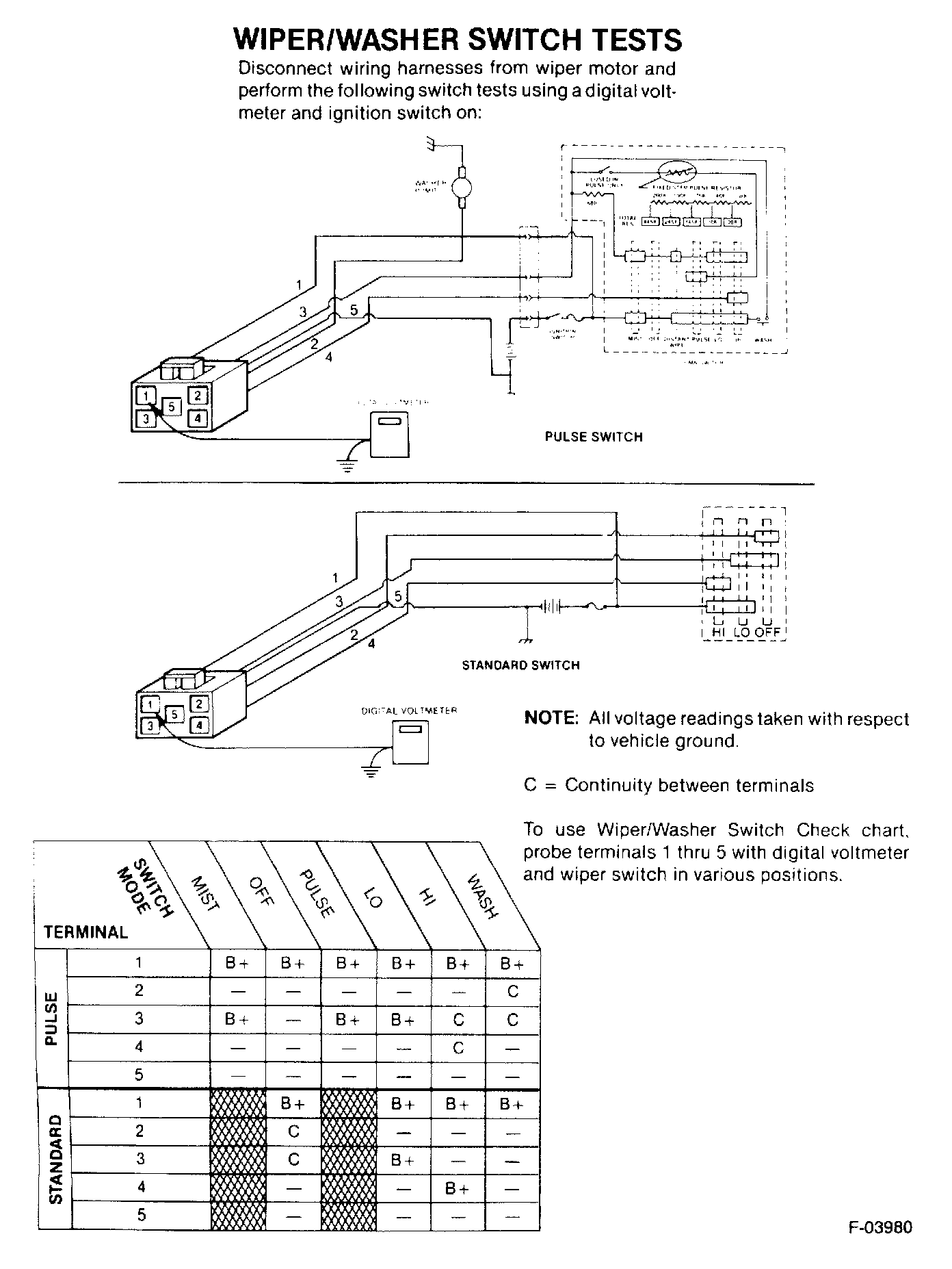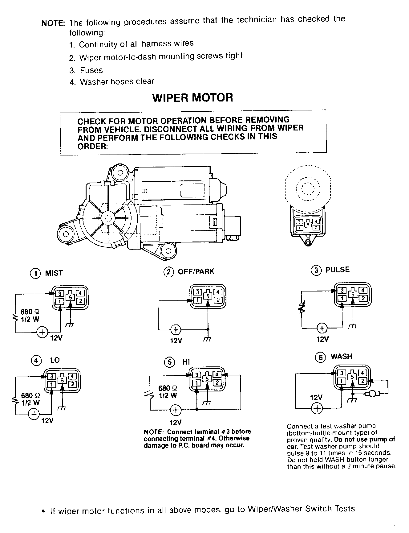 Diagnosis of the Winshield Wiper SystemRefer to the following images to diagnose the system. A diagnostic tool J34660-A Wiper Tester and adapter J34660-400 may also be used to diagnose the wiper system. Follow the instructions that came with the tool to properly perform the diagnosis.